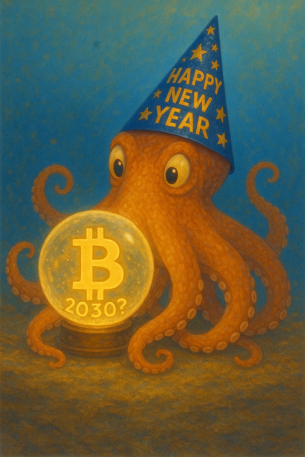 Before the calendar turns, I want to take my best shot at guessing where Bitcoin might be in 2030. I remember reading about Paul the Octopus, 1 the strange little creature who predicted the winners of major soccer matches with startling accuracy. It was pure silliness. The aquarium keepers would lower two flags into the tank with treats attached, and whichever treat Paul grabbed “predicted” the winner. (Or maybe the loser. I never actually figured out the rules.) But the funny part is this:Paul was right four times in a row. I doubt most soccer fans did a better job. So what’s my point? Simple.If we lowered different Bitcoin price predictions into Paul’s tank, he would probably be more accurate than me. But that does not mean I won’t try.